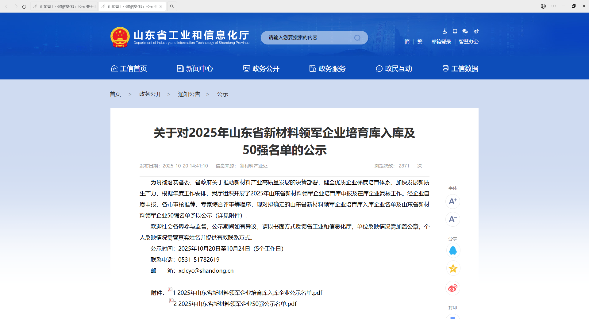 近日,山东省工业和信息化厅对2025年山东省新材料领军企业培育库入库名单进行公示,山东孚日宣威新材料科技有限公司凭借其卓越的技术创新能力和市场表现,成功入选该培育库。